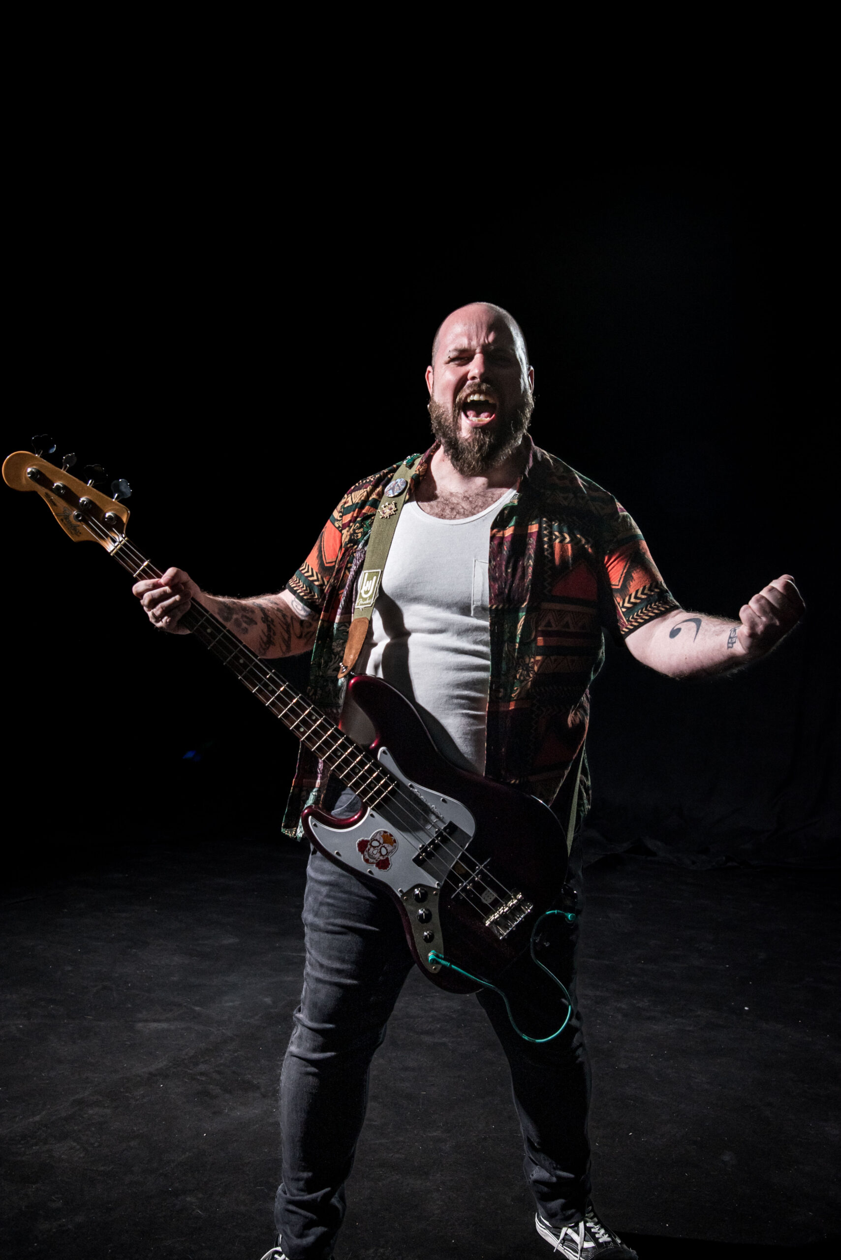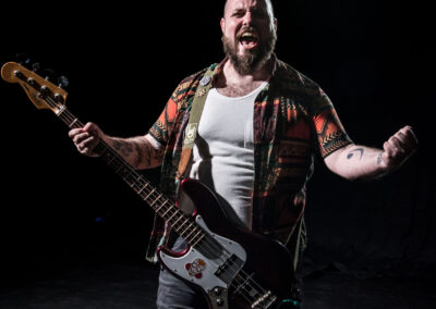 Estamos escribiendo estas líneas por él, puesto que es el capo y mastermind tras la banda. Su empeño, sus besos en la boca a deshoras y sus cuatro cuerdas son los encargados de llevar la línea que menos se escucha en un grupo de rock.